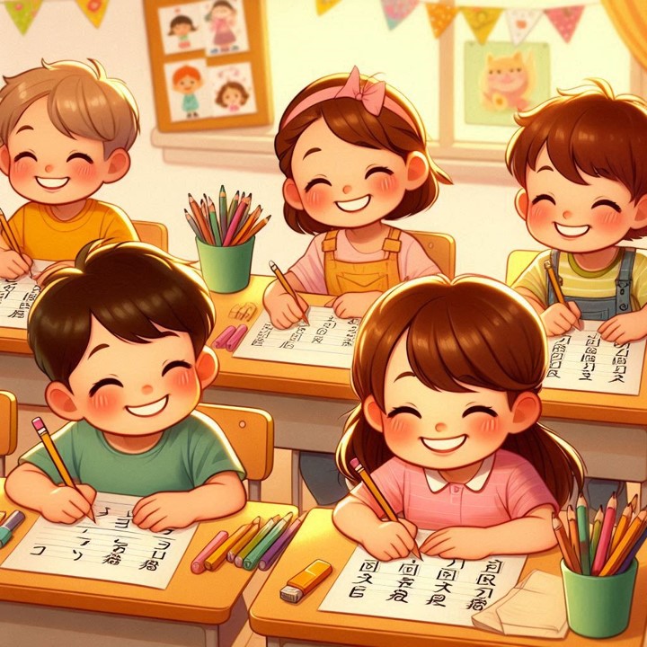 「はい、今日は“あ”を書きましょう」